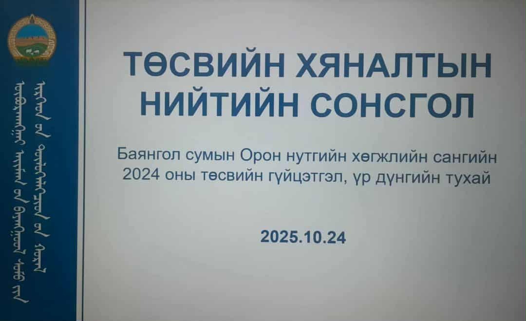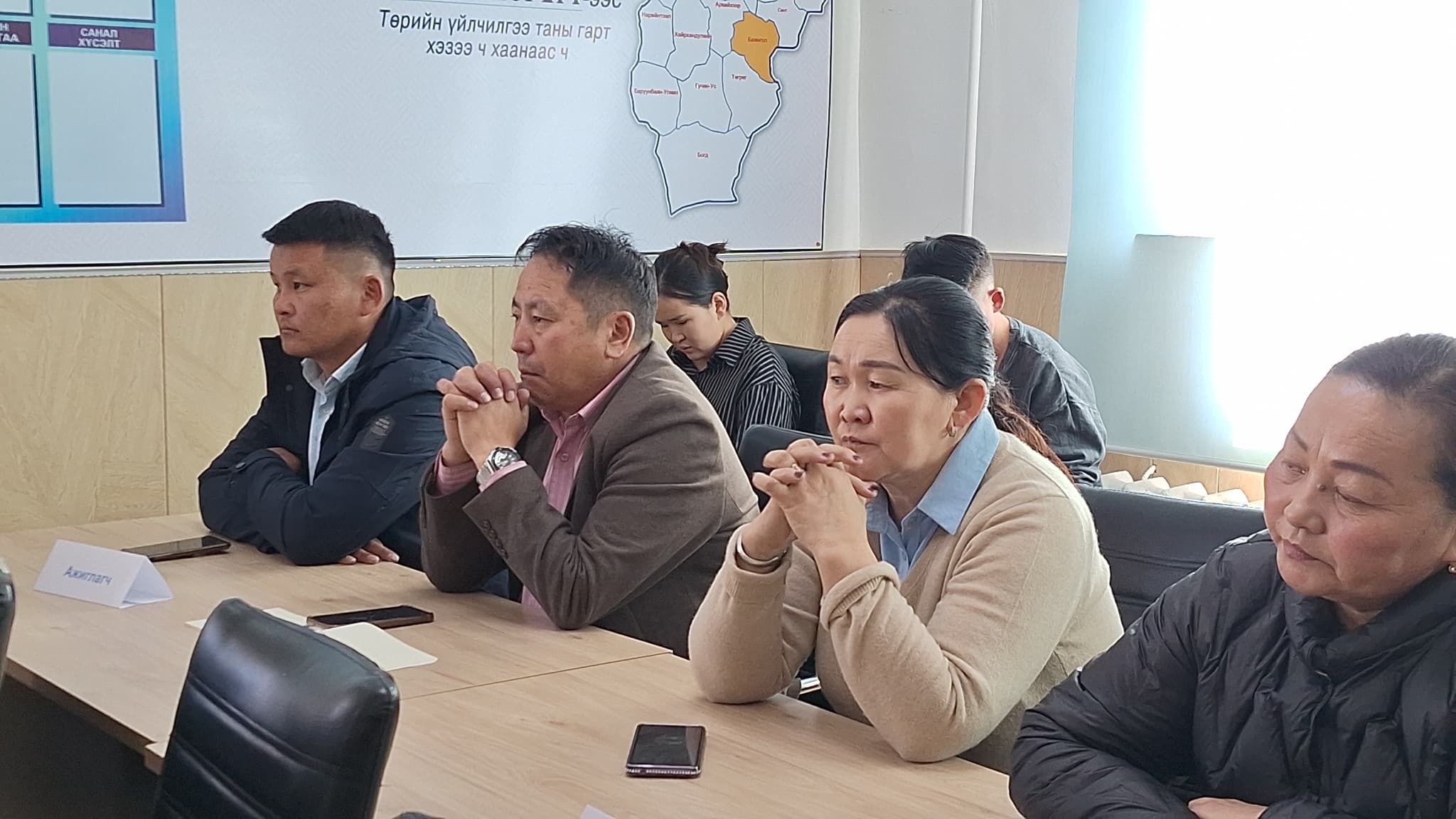 “Баянгол сумын Орон нутгийн хөгжлийн сангийн 2024 оны төсвийн гүйцэтгэл, үр дүн”-д хийх төсвийн хяналтын нийтийн сонсгол зохион байгуулав. Сумын иргэдийн Төлөөлөгчдийн Хурлын 8 дугаар хуралдаан 09 сарын 25-ны өдөр хуралдаж төсвийн хяналтын нийтийн сонсголын товыг 2025 оны 10 дугаар сарын 24-ны өдрийн 10:00 цагт зохион байгуулахаар шийдвэрлэж 08/01 тогтоолыг баталсан. Сонсголын зарыг Өвөрхангай аймгийн Баянгол сумын иргэдийн Төлөөлөгчдийн Хурал https://www.facebook.com/profile.php?id=61572684803516 facebook хуудас болон Өвөрхангай аймаг Баянгол сум https://www.facebook.com/groups хаяг, байгууллагын мэдээллийн самбарт байршуулж иргэдэд зар хүргэсэн. Оролцогчид линкээр, утсаар, ажлын албанд ирж бүртгүүлсэн. 1.Сумын Засаг дарга Я.Жаргалмаа 2.Санхүүгийн албаны дарга М.Мөнхбаатар 3.ЗДТГ-ын нягтлан бодогч Ц.Чулуунтогоо нар оролцсон. Дуудагдсан албан тушаалтнууд бүгд ирсэн. Оролцогчоор 5 иргэн, ажиглагчаар 17 иргэн бүртгүүлснээс оролцогч 3 иргэн, ажиглагч 12 иргэн оролцлоо. Сонсголын тэмдэглэлийг байршуулав.